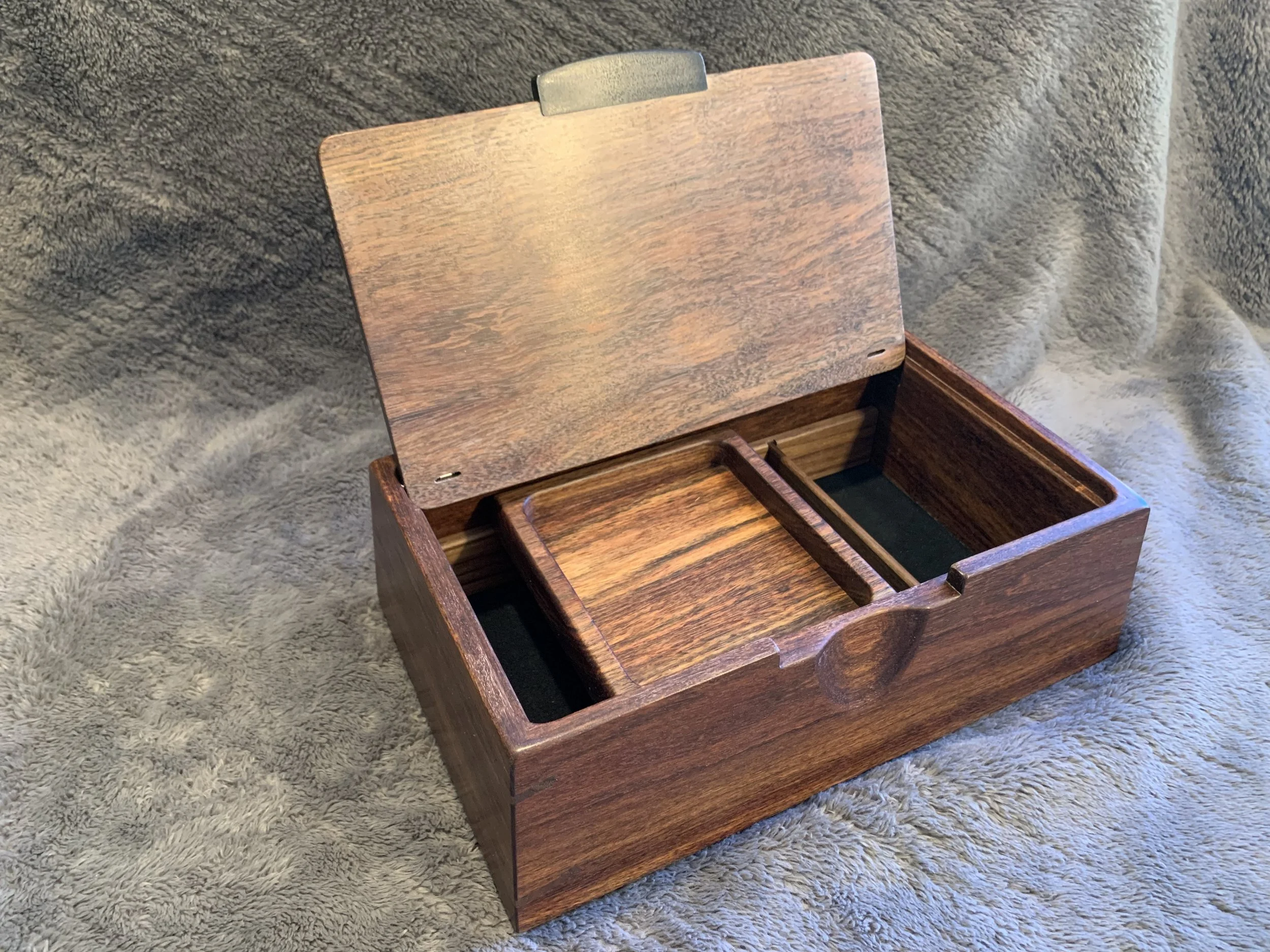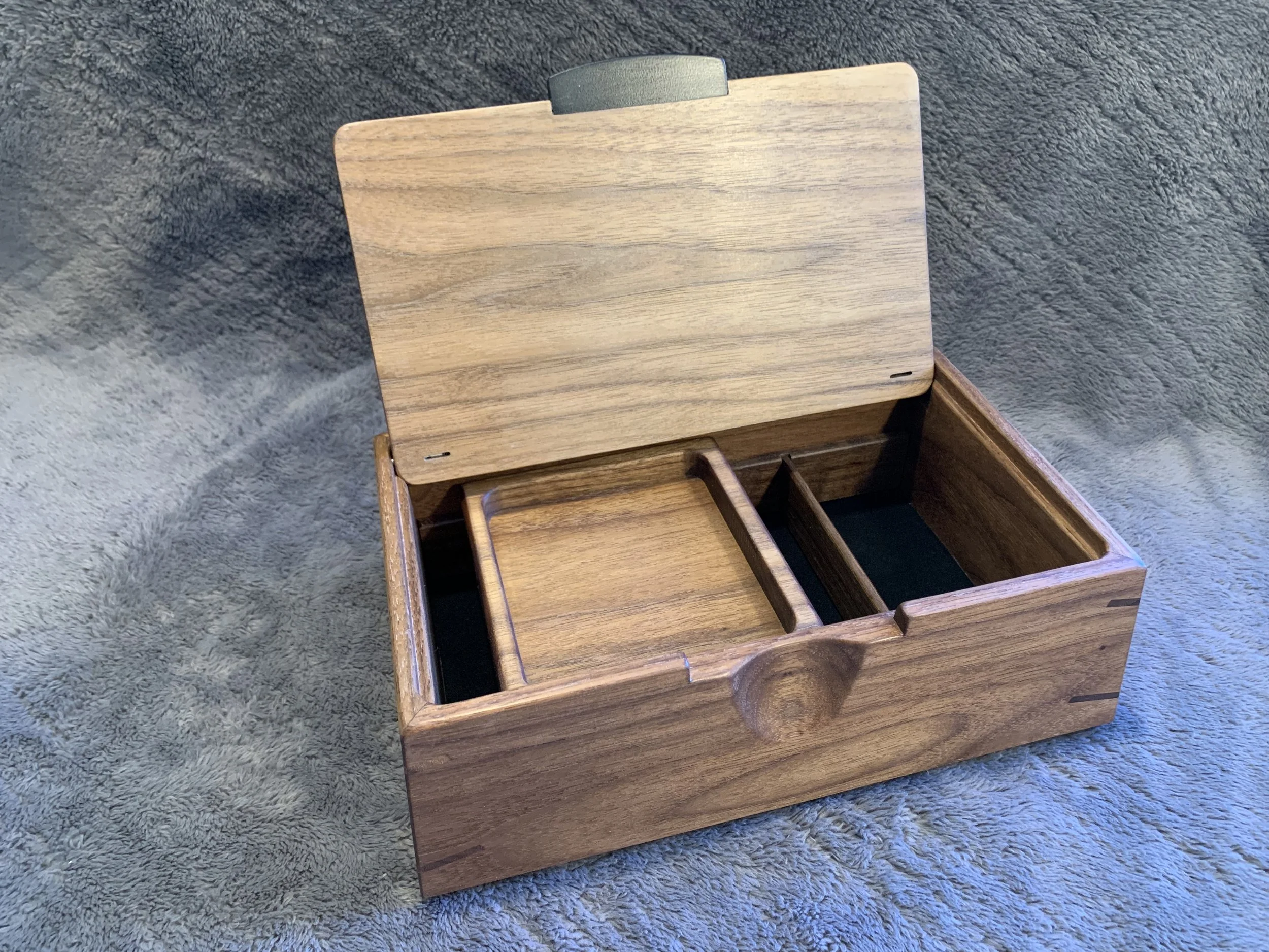 I made this box because I wanted a nice, purpose-built place to store my Cold Card and other hardware wallets, and also wanted to make something for some family members.